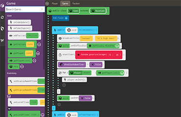 The participant can use a drag & drop interface which is highly intuitive, but the blocks also show the actual java code too. Coding concepts like variables, if/then/else statements and constructors will be learnt. More advanced participants can switch any time from block-based drag-and-drop code to Javascript.